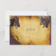 Elegant, rustikt pappersbakgrund med krullade kanter på en djup lila bakgrund. Vintage lila och blå druvrankor. Anpassa för att skapa den perfekta RSVP till ditt vingårdsbröllop. Inbjudningar, vinlista och menykort finns också tillgängliga i denna design.