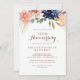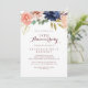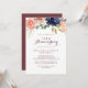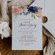 Denna rustika guld kalligrafi 50-års bröllopsdags inbjudan är perfekt för en modern bröllopsdag. Designen har handritad akvarell lila, marinblå, rosafärgad, vinröd, marinblå blommor, gröna och gyllene blad.