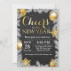 Guld nyårsafton festinladan. Gott nytt år. Guld snöflinga. Vit fjäder. Jul bröllopsfestinbjudan. Guld och svart tavla bakgrund. Svart och vit. För ytterligare anpassning, klicka på "Anpassa"-knappen och använd vårt designverktyg för att ändra denna mall.