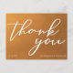Detta rustika bröllopskort med guldtryck tackar med elegant vit typografi över en underdriven jordtonad gradient. Enkla ljusorange och bruna nyanser följer de nuvarande höstrenderna för ett bohemiskt bröllop denna höst. Fyll i looken med din minimalistiska monogram och bröllopsdatum.