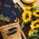 Rustik Gult Solrosfärgsfärgad Mörk Bakgrund Affärskort, Rustic charm möter elegans - vårt solrosliknande affärskort med en mörk bakgrund får ditt varumärke att framträda