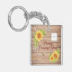 En solrosdesign av rustisk gult i elegant bestående av brunt trä/bakgrunden av trä som dekorerats med söt blommigt vattenfärg gult solros, ljus och bin. Anpassa genom att lägga till logotyp, företag/företag/företag namn. En underbar snyggt för din bil/ditt kontor nycklar