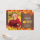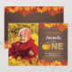 Rustik höst-pumpafödelsedagsinbjudan med anpassad bild. Höstfödelsedagsfestinbjudan. Guldglitter. Rustik träländsk vintage retro bakgrund. Orange och gul. 1:a Första födelsedagsinbjudan. För ytterligare anpassning, klicka på "Anpassa den"-knappen och använd vårt designverktyg för att ändra denna mall.