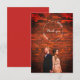 Ett rustikt handritat fototackkort för examen skapat med ett exempel på en röd tegelstensbakgrund för att ge en vintage/rustik känsla och en mjuk vit krans med handritad kalligrafi med orden Tack. Perfekt för din nya examen eller någon speciell i familjen