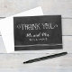 Anpassade tack-kort kan personifieras med ett monogram av det nygifta parets efternamn. Designen har en svart tavla med strukturerad bakgrund och dekorativ handskriven text med ett vitt kritutseende.