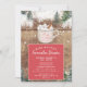 Bjukbildsinbjudan. Information på framsidan och baksidan. Snö. Winter träd. Baby är kallet utanför. Kopp av Hett choklad. Rustic.