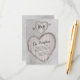 Eleganta landshustrukort med ett rustikt silverbjörksmotiv och ett skulpterat hjärta med detaljer från er bröllsdag och era initialer.
