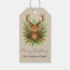 Rustik hjorthuvud från skogen med vintergrön lövsä presentetikett