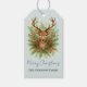 Tillsätt en touch av skogselegans på dina presenter med dessa vackra akvarell-hjort presentkort. Med en majestätisk hjort omgiven av mjuk grönska, tallgrenar och röda bär, ger denna design en mysig rustik charm till varje present.