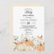 Välkommen din lilla pumpa med denna mysiga och eleganta hösttema-inbjudan till babyfest. Med trendiga akvarellpumpor, mjuka höstblommor och sofistikerad kalligrafi sätter detta kort tonen för en vacker säsongsfirande.