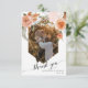 "Rustik höstblomma bladverk geometrisk guld foto tackkort." En överkant med elegant akvarell-målad höstblomma konst med bladverk grönska hänger över toppen av en mjuk, roséguld glitter, geometrisk stil ram. Ditt fotografi ersätter provet enkelt. En vacker script kalligrafi teckensnitt, "tack" tillför en modern touch. Era namn och bröllopsdatum (eller annan information) är enkelt att anpassa. På baksidan finns samma bladgrönska och en mjuk grå stuga träbakgrund som låter dig handskriva ditt personliga meddelande. Konst målad och grafiskt designad av internationellt licensierad konstnär och designer, Audrey Jeanne Roberts, upphovsrätt.