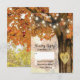 Höst skog bröllop rsvp kort med en rustik höstträd täckt av röda, orange och gula blad, ett skuret hjärta med era initialer, slingrande ljus och en modern bröllopssvarsmall.
