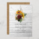 Höst - Höst rustik lanthus landsbygd bröllopsinbjudan med vinröda och vita rosor och solrosor med en stänk av bomull. Perfekt för alla teman eller trädgårdsbröllop.