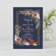 Rustik Höst Marsala Blommig Marinblå Guld Bröllop Inbjudningar