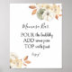 Momosa Bar skylt med en illustration av vackra höstlöv och pumpor med orden Momosa bar i ett roligt kalligrafi manus. Eller redigera rubriken till att säga Mimosa Bar för en Bröllopsfest. Matchar vår Rustik höst kollektion som finns i Adore Paper Co. Zazzle butik.