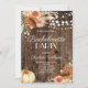 Skicka den blivande bruden i höststil med denna fantastiska rustika höstliga terrakotta- och pumpabohostil-inbjudan till möhippa. Rik terrakotta, bränd orange och rosafärgade blommor med mjuk pampasgräs och jordiga torkade botaniska växter flödar vackert över båda hörnen på en varm väderbiten träbakgrund, medan en charmig vit pumpa och mjukt lysande strängljus tillför en mysig, romantisk värme som gör denna design både festlig och intim. Perfekt för höstliga möhippor, tjejkvällar, brudavskedsfester eller vilken sista-festen-innan-ringen-sammankomst som helst med ett rustikt hösttema. Den eleganta skrivstilen och det djärva bokstavstyperna hittar en perfekt balans mellan lekfullt och sofistikerat – precis rätt för en minnesvärd förbr