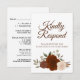 Dessa vackra bröllops-svarskort har en vacker, handmålad akvarelldesign med en höstblomsbukett bestående av rosor och bladverk i nyanser av roströd, bränd umbra och korallpersika. Den tryckta texten lyder: Vänlig svar. Baksidan av kortet är ett formulär som era gäster fyller i för att ange om de kan komma, hur många gäster de är och deras måltidsval. Det finns också plats för en webbadress så att era gäster kan svara online om de så önskar. Den eleganta bohemiska blomstilen är garanterat tilltalande.