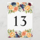 Rustik höstblommig bröllopsbord nummerkort tack kort