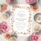 Den rustika höstblommiga bröllopsinbjudan är perfekt för den naturinspirerade bruden. Med vackra handmålade akvarellvilda blommor i en rad nyanserade rosa, dammig rosafärg, burgunderrött och terrakotta, är denna svit inramad i en stilren rustik boho-stil med salvia-grönska som tillför en touch av modern charm. Gör din stora dag till en dag att minnas med denna förtrollande brölloppssvit! Hitta kompletterande produkter i Rustic Boho Fall Wildflower Wedding Collection.