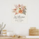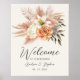 Välkomna era gäster med denna eleganta välkomstskylt för höstbröllop, med mjuka terrakotta-, elfenbens- och rosafärgade akvarellblommor och rustik pampasgräs och botanisk grönska. En perfekt matchning för utomhus-, boho- eller höstteman bröllop. Personalisera med era namn och datum.