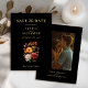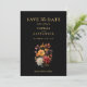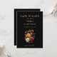 Meddela din speciella dag med den här Rustiska höstblomman Spara datumkortet med en lush vattenfärgsbukett i rikens rost och naturliga falltoner som ställs in mot en fetstilt svart bakgrund. Perfekt för bröllop under hösten med ett gediget, botaniskt eller jordnära tema. Kortets baksida innehåller utrymme för ett personligt foto, skapar det både snyggt och hjärtligt. Fullt anpassade för att passa ditt unika firande.