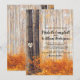 Landliga bröllopsinbjudningar med en rustik höstskog med röda, orange och gyllene löv, silverbjörkar, ett sagolikt snidat hjärta på trädet med brudparets initialer, och en elegant redigerbar bröllopsmall.