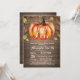 Rustik höstbröllopsfestinbjudan Kort Pumpa Blommig med rustik trädgård bakgrund. För ytterligare anpassning, klicka på "Anpassa" knappen och använd vårt designverktyg för att ändra denna mall.