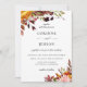 Rustik vattenfärg Hösthöftens blad och blommigt i söt av gult, rosa, orange rött, grönt och brun bröllopsinbjudning. Kortets baksida har en solid förbränd orange färg. Elegantens typografi med fet stil och kalligrafi.