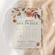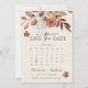 Den här eleganten Spara datumkortet har en robust kalenderdesign med bränd orange och teracotta vattenfärgsfärgade blommigtar, botaniskt boho-trädgård ro och burgunddyna dahlias. Perfekt för ett fallbröllop med moderna bohemiska stil och handskrivna kalligrafaccenter.