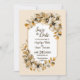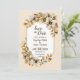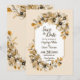 Detta höstliga blomsterbröllops rädda-datum-kort fångar essensen av hösten med sin livfulla blomsterdesign. Kombinationen av rustika färgnyanser, blommande kronblad och guldblad skapar en charmig och romantisk stämning. Detta kort är perfekt för par som planerar ett vackert höstbröllop och är det perfekta sättet att tillkännage er kommande vigsel med stil.