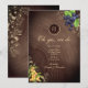 Fira er kärlek i rustik elegans med vår bohemiska höstliga bröllopsinbjudan. Med ett tidlöst monogram högst upp utstrålar denna inbjudan sofistikering. De varma färgerna av akvarellfrukter tillför en touch av höstlig charm, medan vintage guldblommig spets på en träbakgrund ger en rustik men ändå förfinad känsla. Oavsett om ni planerar en intim sammankomst eller en storslagen tillställning, sätter denna inbjudan tonen för en oförglömlig fest. Låt era gäster veta att de kan förvänta sig en kväll fylld av kärlek, skratt och minnen för livet med denna eleganta inbjudan.