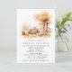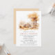 Höstinspirerade bröllopsinbjudningar med en scenisk akvarellillustration av ett picknickbord under orange höstträd. Rustikt inspirerad design med formella script-ackcenter. Evenemangstexten är utbytbar (till "bröllopsbrunch", t.ex. Script-texten är inte redigerbar). Baksidan har en varm beige färg. (Färgerna kan ändras om önskas med hjälp av designverktyget).