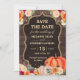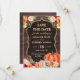 Rustik höst orange pumpa blomsterdesign med orange och röda blommor på en mörkbrun träd bakgrund