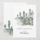 Personlig Rustik Hytt Vattenfärg Skog Grön Julkort