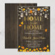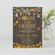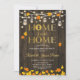Rustik inflyttningsinbjudan med mörkt brun trästruktur och stränglyktor. Innehåller murslevar, höst höstlöv och skrivstil. Hemma är bäst! Perfekt för en rustik fest. Vänligen kontakta mig om du behöver ytterligare anpassning.