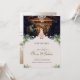 Fira din kommande bröllopsdag med detta vackert varma och intima "Spara datumet"-kort, perfekt för mysiga, rustika eller ljusstakekransade bröllop. Med en brud och brudgum under en romantisk ljuskrona i en lokal med trädetaljer, utstrålar denna design elegans och charm. Kompletterad med mjuk grönska och guldband, är det ett tidlöst sätt att meddela din speciella dag.
