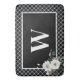 Den här designen är enkel, men gör ändå en påstående, med en inledande monogram i vitt på en mjuk svart bakgrund på svart och vit rustik plaid. En vit ram är utkorkad med en rustik bukett av gräs och vintervit blommigt. Den här badmatten hälsar er helgdag- och julgäster i vackra underskattade stil. Skapat av Farmhouse Press.