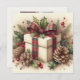 Fånga den rustika julandan med detta unika, fyrkantiga, julkort av en snygg låda inslagen med en coquette, rutig slinga, omgiven av hagtorn och kottar. Mallar medföljer med bilden på baksidan.