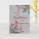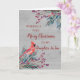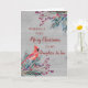 Glad jul till svärdotter kort med vinter akvarell bladverk, kardinal, rustikt trämönster och genomtänkt vers.
