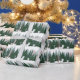 Denna festliga "grönt"-helgdag utformar mönster på en vit bakgrund från snö, och har en vinterplats i rustik chic från en skogsskog från gräs träd vid Julgården. Originalteckningar av Caroline Bonne Müller