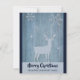 Ett platt julkort som personifieras med ditt namn och meddelande på baksidan. Designat med en blåtonad falsk trädgård bakgrund. Överlagrat är en siluett av en ren med stora horn och några vackra snöflingor och stjärnor som faller ner runt honom.