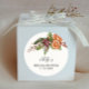 Klistermärke för rustic julbröllopsfavor med vattenfärg-illustration av vinterbotaniska växter, inklusive mistel, tallgren, bär, apelsin, etc.