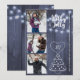 Rustik lantlig vinterstil semester kort på en marinblå lada trä bakgrund med strängar av gnistrande ljus med en collage av tre bilder, en stor vit "Holly Jolly" typografi stil, ett klotter handritat julgran och ett hjärtat monogram. +++++++++++ Personifiera det med dina bilder, familj monogram och signatur!