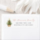 Enkel rustik adressetikett med vattenfärg julgran i en korg. Parat med modern och script typografi