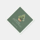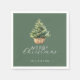 Enkla rustika pappersservetter i dammgrönt med akvarellgran i korg med dekorationer. Kombineras med modern och skrivstilstypsnitt