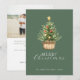 Enkel rustic gratulationskort med akvarellträd i en korg med dekorationer. Kombinerat med modern och scripttypsnitt och ditt favoritfoto.