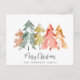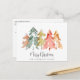Enkel rustic design bestående av en vattenfärg abstrakt bild av granar i dämpad grön, röd, guld och orange. Du kan enkelt anpassa hälsningen ("God Jul", "Julen är här", "Glad Jul" osv.) och ditt familjenamn på framsidan, och ditt meddelande och returadress på baksidan.