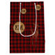 Den här festliga julhjorten, presentpåsen med Buffalo-ruta och rustik tema är perfekt för vintersäsongen. Den har röd Buffalo-ruta baktill, ett trädstubbe med initialer och en rustik illustration av en hjort/hane.