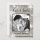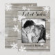 Ljusande snöflingor på en lada bräda bakgrund framhäver ditt foto på detta romantiska julkort.