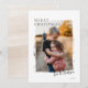 Vid första anblicken har kortet en klassisk, matta finish med ett hjärtvärmande fotografi som mittpunkt. Fotot är inramat av en unik och rustik trasig pappersram, som ger designen en touch av vintage med modern charm. Lägg till en enkel julhälsning med familjens namn i ett handskrivet typsnitt